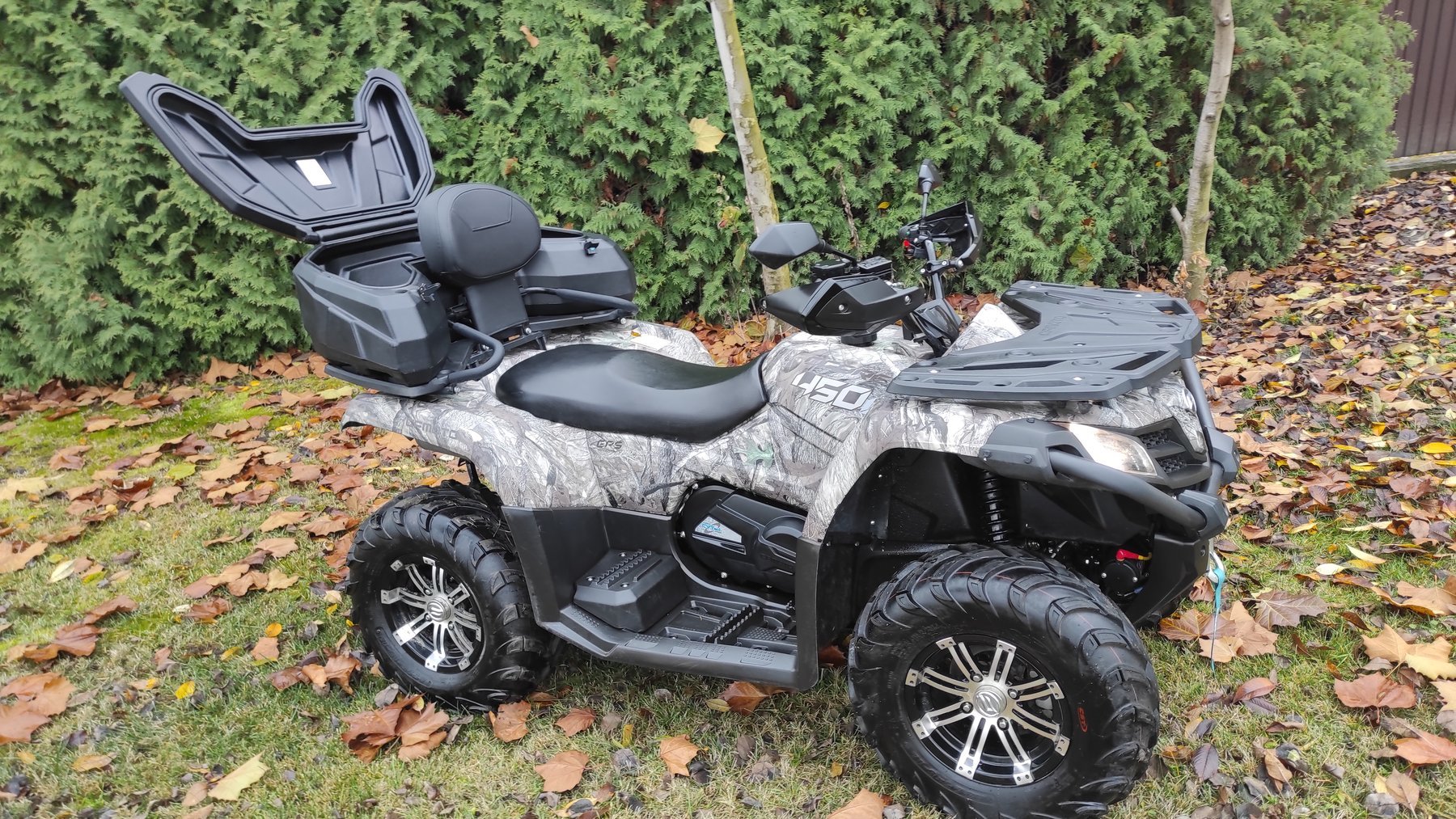 Квадроцикл куплен у официального дилера в 2020 году, приехал всего 1060 км. Обьем 450 куб. Комплектация полная, состояние нового.
